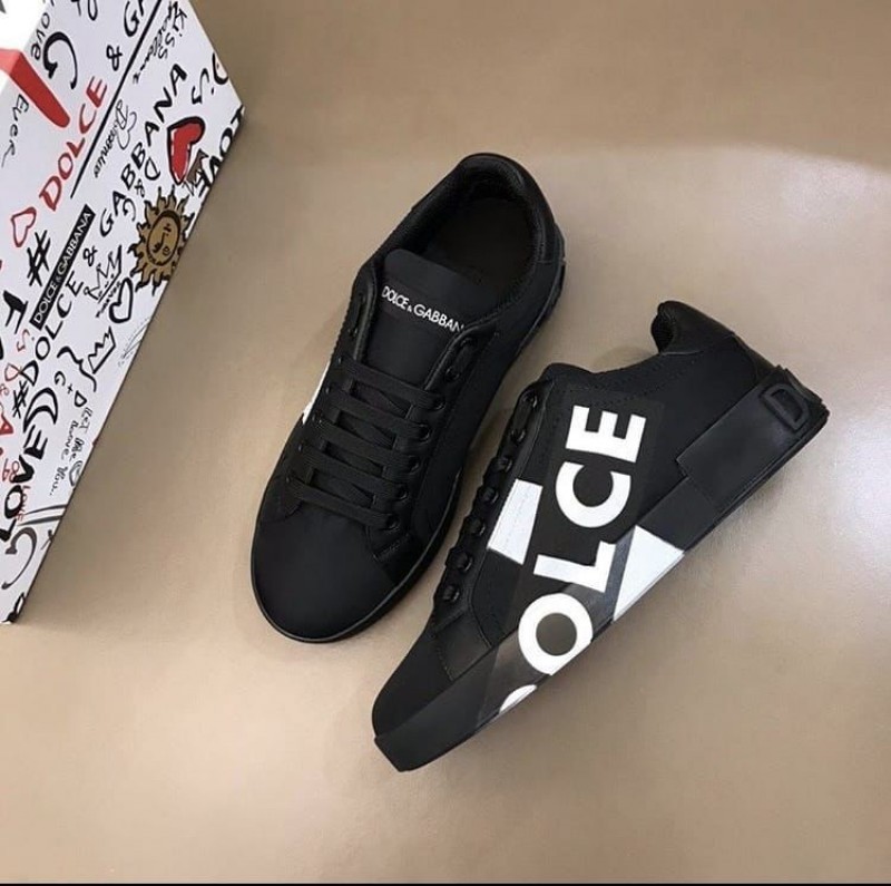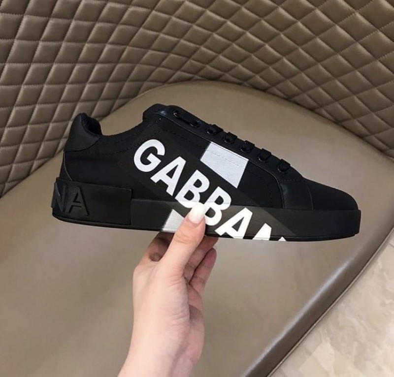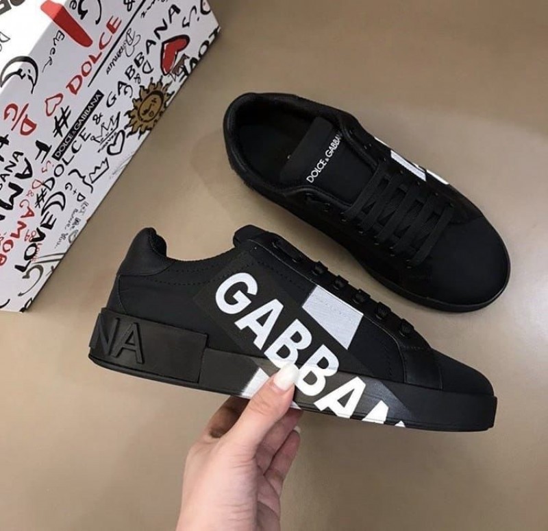 D G PORTOFINO LOGO PRINT BLACK PREMIUM SNEAKER
