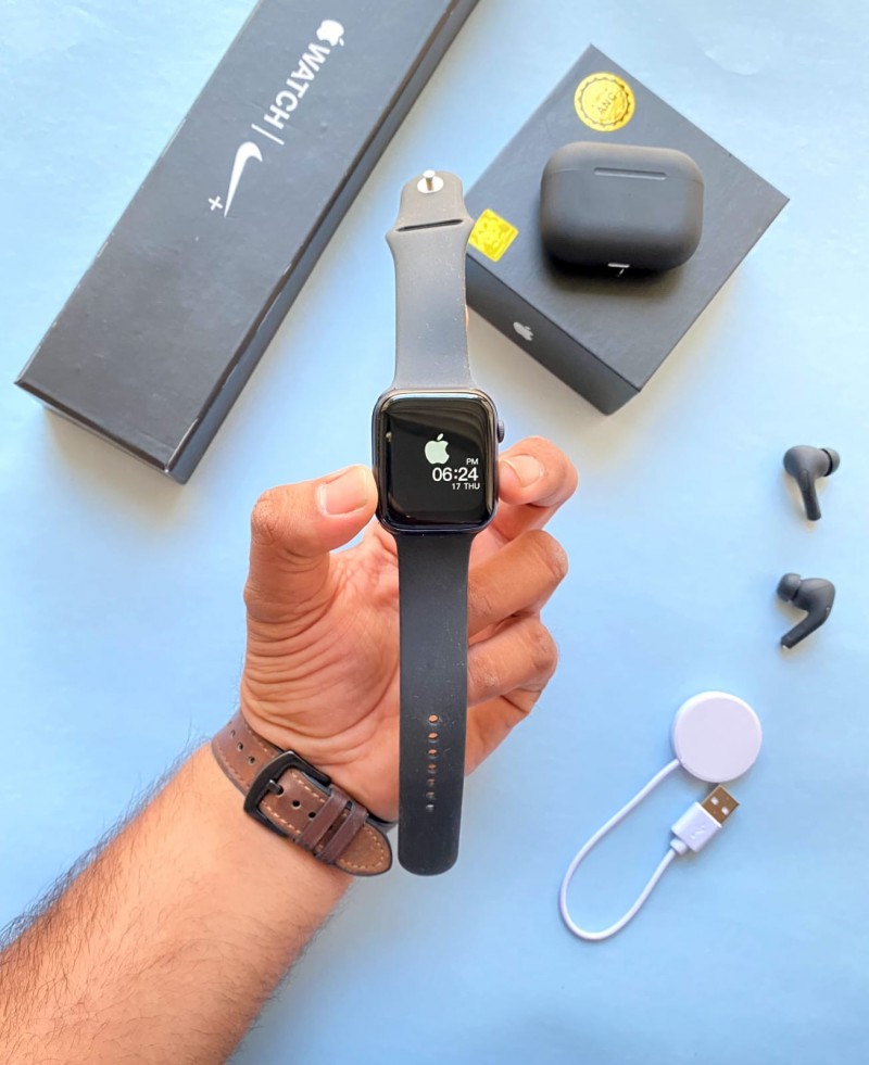 *First Time Ever Black Edition Apple Combo* *Most Sold Apple 2 in 1 Combo* ???????? *NEW LAUCH COMBO 2022* ???????? ???? *IWATCH Series 7* ???? (Model :- T500+ Pro / Nike Box) ???? *AIRPORD Black* ???? (Made in Japan Anc + Deep bass)