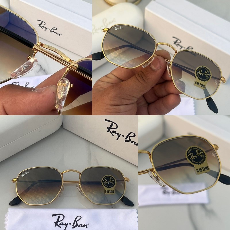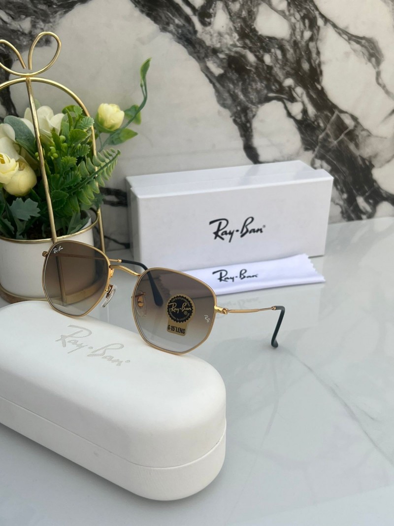 rayban hexagonal gold brown
